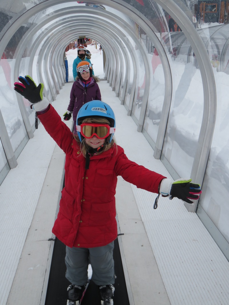 The next two days were pretty much perfect. After a brief attempt at teaching the kids to ski ourselves – we quickly realized there are three of them and only two of us, and when they all three fell in various spots on the mountain and lost their skis 20 feet from where they were, we decided to get them lessons. All three of them did wonderfully. They all fell in love with skiing and I fell in love with it all over again. We had to bring our dog with us one of the days because we had to check out of our hostel. At one point, she got loose on the mountain. I was thankful everyone around thought it was pretty funny as the five of us chased her around the bunny hill dodging the skiers. After a bit, she came back to us and I’m sure she was laughing hysterically inside while acting as though it was perfectly normal for a dog to be running along side and in between skiiers. It reminded me of our afternoon with the Austrian ducks.