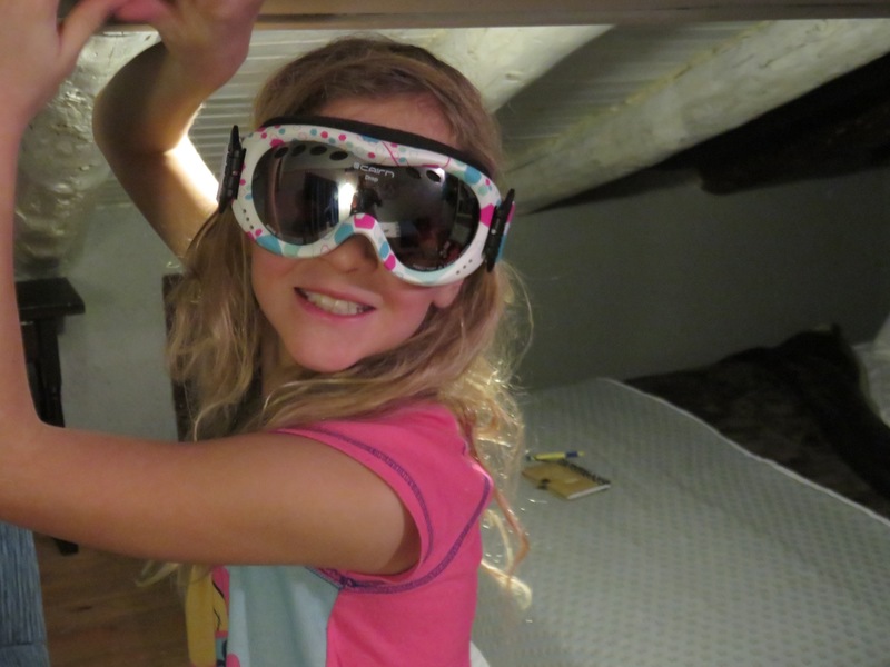 And that’s when it happened. Both Matt and I were in terrible moods, and I was thinking the kids would be the grumpiest of all. Why are we doing this? Who cares about Andorra or skiing? Why couldn’t we just have gone straight to Portugal and avoided all the mess? I definitely said “we should’ve” more times than I could count, but here’s what happened as we got into this bizarre room in the attic with no lock on the door, no bathroom, no heat, and the lowest ceilings in Europe. (I’m guessing this entire house would pass zero health/safety codes.) Mirabel, our 10 year old, looked in the room and exclaimed, “It’s perfect! It’s so cozy!!” She immediately pulled out her notebook, rolled onto a bed and started working on a poem.  Our 7 year old smiled and exclaimed, “I love it here!” and pulled out a few of her Playmobil toys from her little backpack and rigged up a pulley system across the room with some string she found. “The low ceilings are perfect for this!!” And Maya, our 13 year old, snuggled up with our dog and started reading happily from her Kindle.